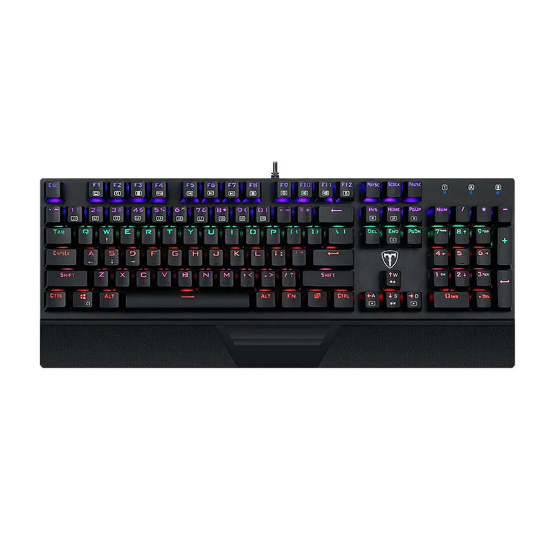 کیبورد تی دگر T-DAGGER با نورپردازی RGB که به صورت پیشفرض با حالت رنگین کمانی شروع میکند، و دارای استراحتگاه مچ دست میباشد تا در ساعت های طولانی بازی کردن خستگی را احساس نکنید.