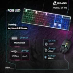 کیبورد و ماوس مخصوص بازی جکنگ مدل JK_1980 یک کیبورد و ماوس مقرون به صرفه و در عین حال با کیفیت است که با نورپردازی زیبای خود توجه هر کاربری را به خود جلب میکند.