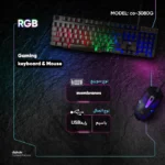 RGB آن است. این کیبورد با نورپردازی LED RGB با قابلیت خاموش و روشن کردن توسط Scroll Lock میتواند ظاهر جذابی به میز شما بخشیده و به بهبود تجربه بصری کمک کند. ماوس گیمینگ CO 3080G نیز با طراحی ارگونومیک و سنسور